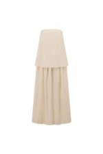 Perfect for your next event. the Aviana Dress is an elegant design in a high quality cotton viscose blend fabric in beige. It features a strapless neckline. boxy overlay top and a full pleated maxi skirt. Dress it up with the Strappy Rafaela Heels and Flores Earrings. Designed exclusively by Sabo.