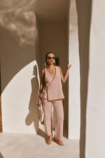 The ultimate chic and cosy set has arrived! The Billy Top is made from a natural cotton woven fabric in coral and white contrast stripes. It is a boxy style featuring a wrap panel at front with tie at side and longline hem. Get the look with the Billy Pants. Designed exclusively by Sabo.