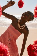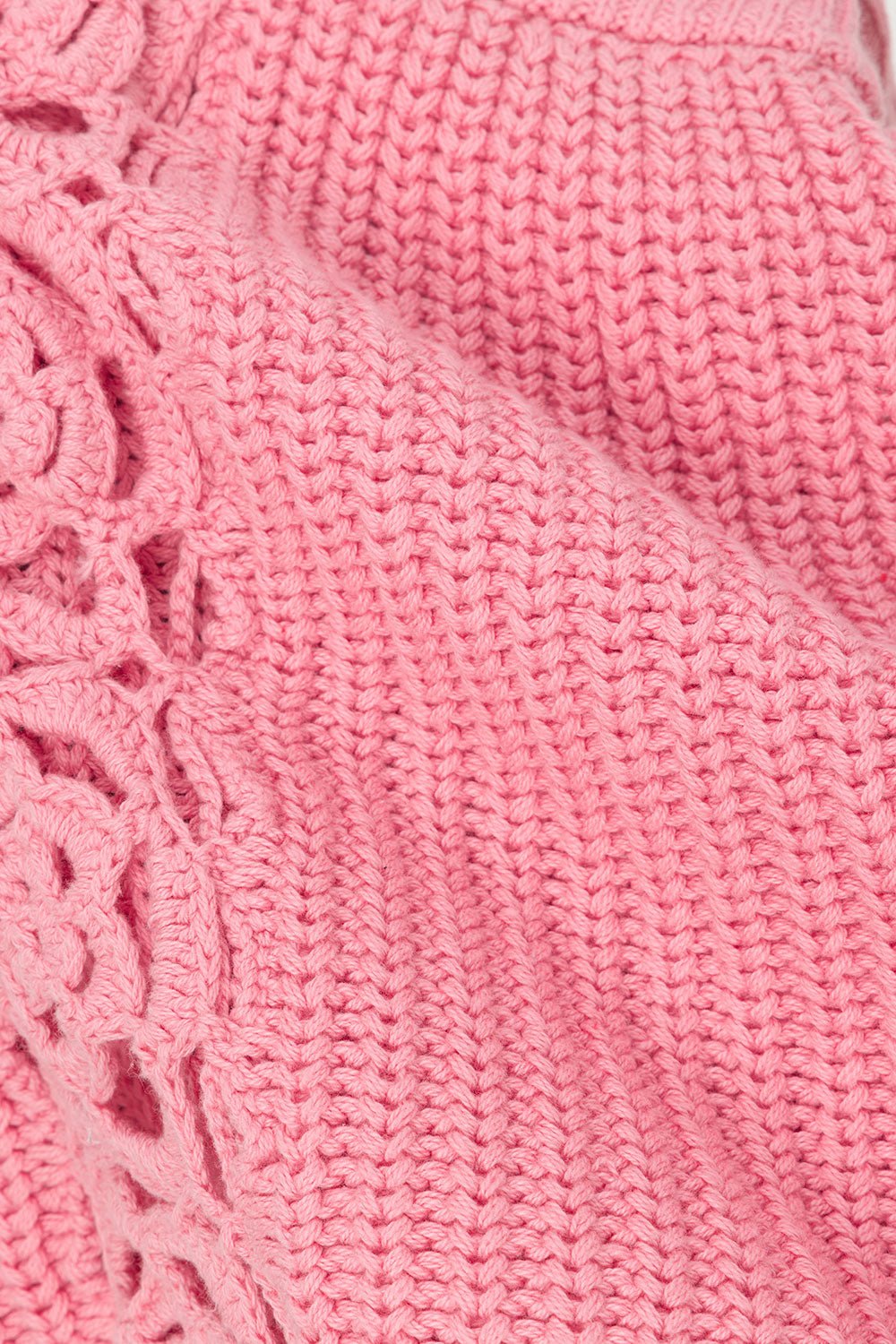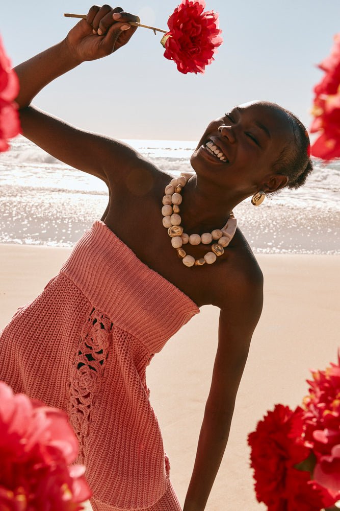 The Ellea Top in a premium cotton knit in a pink hue. Strapless straight neckline with wide elasticated band. flower crochet panels and boxy longline hem. Get the look with the Ellea Pants. Exclusive ZÃCO design.Â