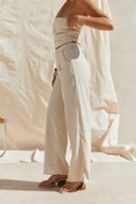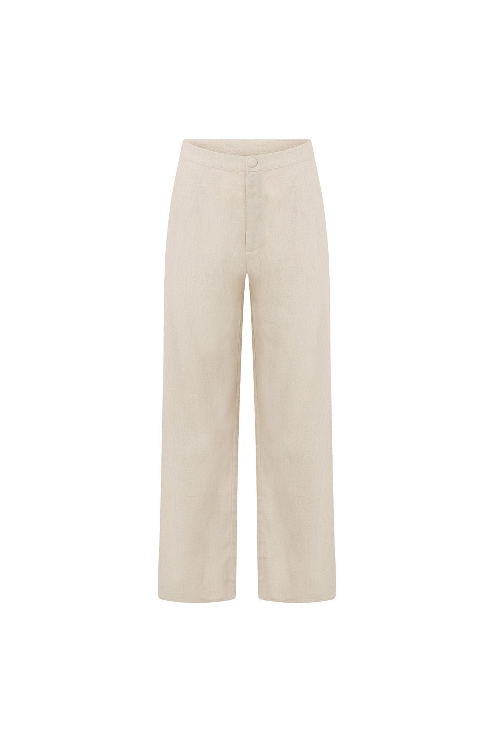 A chic set or the perfect styling pants. the Isa Pants are made from a natural linen cotton blend fabric in a beige hue. They are a high waisted style with a fly and covered button closure and relaxed wide leg pants. Style with the Aimee Top and Tamia Heels for the perfect outfit to take you from day-to-night! Designed exclusively by Sabo.