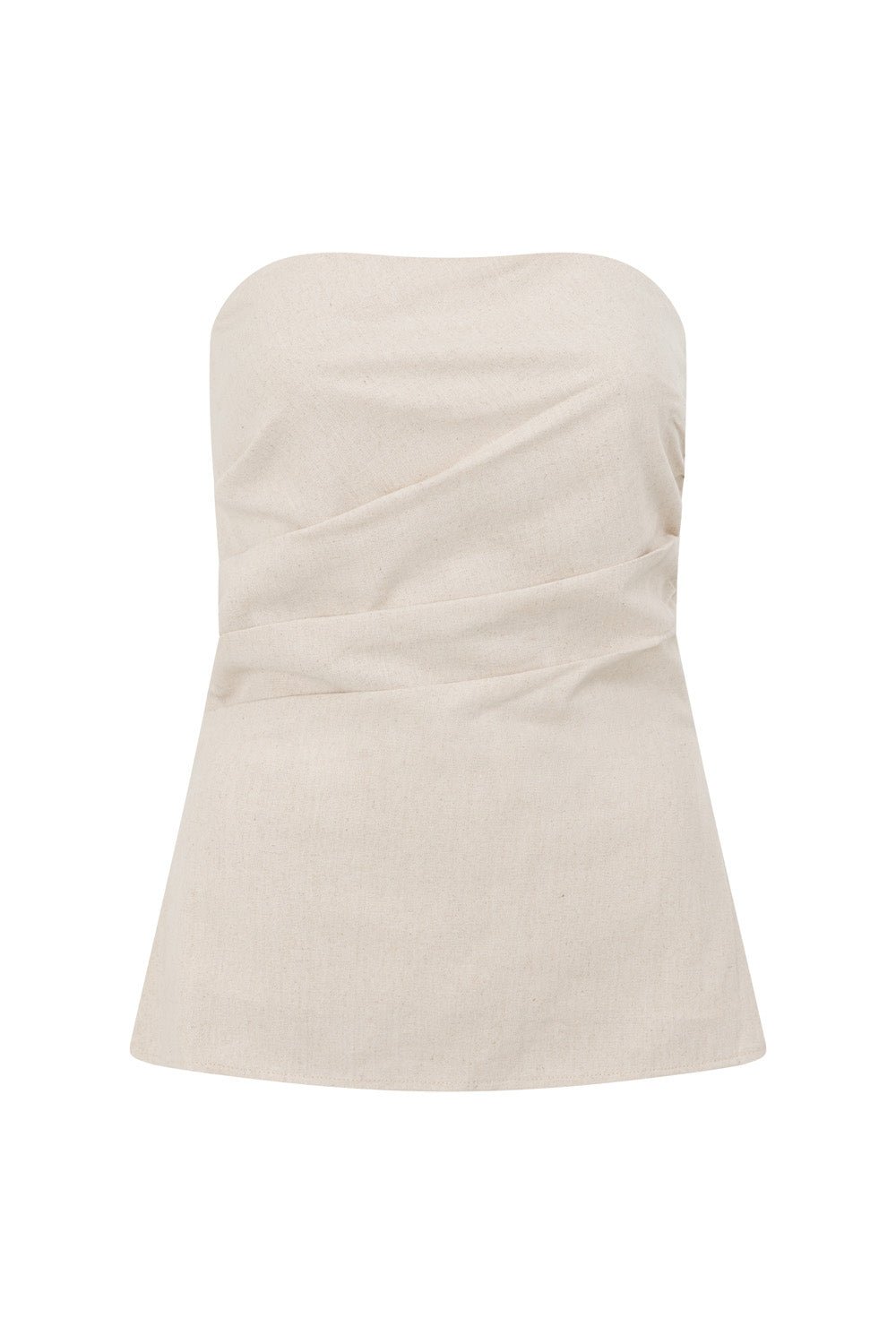 A stylish set for our fashion forward girls! The Isa Top is made from a structured natural linen cotton blend fabric in a beige hue. Featuring a strapless neckline. it boasts gathered details at waist and a longline a-line hem. Get the set and pair with the Aimee Pants and Tamia Heels! Designed exclusively by Sabo.