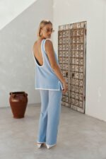 Let us to the layering for you! The Paxton Jumpsuit is made from a cosy woven fabric in a baby blue hue. It features a low slung scooped back. contrast white trims throughout. longline top overlay with splits at sides and relaxed fit through the pants. Dress it up with the Tamia Heels. Designed exclusively by Sabo.