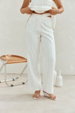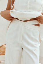 A chic staple pair with a twist! The Tilda Pants are made from a structured cotton fabric in white. They are a tailored style featuring an asymmetric waistband with cutout detail at side and wide fit. Get the look with the Tilda Top. Designed exclusively by Sabo.