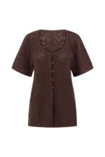 The vintage inspired Umiko Top is made from a natural cotton crochet fabric in a chocolate hue. It is a relaxed style featuring a scooped neckline. boxy sleeves and a button opening at centre front with covered buttons. Get the set with the Umiko Pants. Designed exclusively by Sabo.