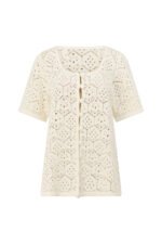 The vintage inspired Umiko Top is made from a natural cotton crochet fabric in a cream hue. It is a relaxed style featuring a scooped neckline. boxy sleeves and a button opening at centre front with covered buttons. Get the set with the Umiko Pants. Designed exclusively by Sabo.